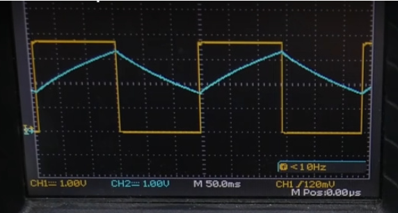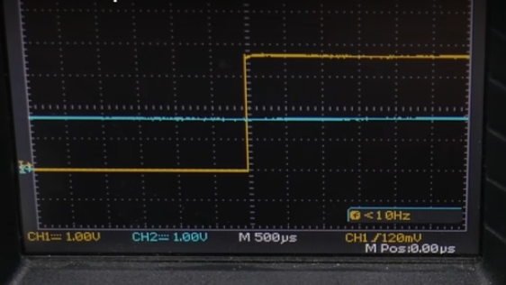 For more precision on the output we must add a ceramic capacitor next to the component si this will reduce the noise between the reset and the output. You can see the noise using an oscilloscope like so :