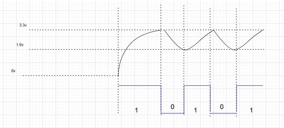 - If the positive input is above the negative input the comparator switch to ON (1)
