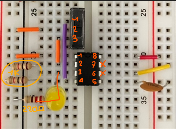 So, as we can see we don’t need PIN 6 and 7. Instead, we are going to use PIN 4 which is used to RESET SR Latch.