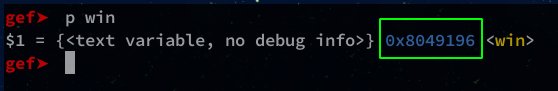 Now we’ll get the address of the win() function.