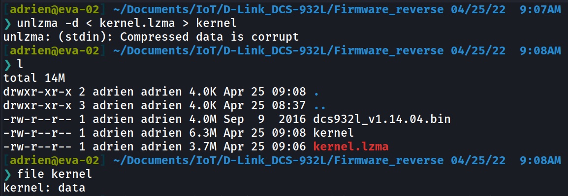 dd if=dcs932l_v1.14.04.bin skip=327744 bs=1 of=kernel.lzma