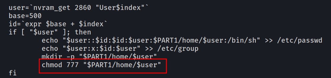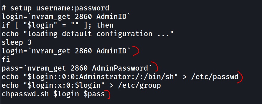 This script is interesting, since we can see the process of creating a new user on the system which is added directly to the /ect/passwd.