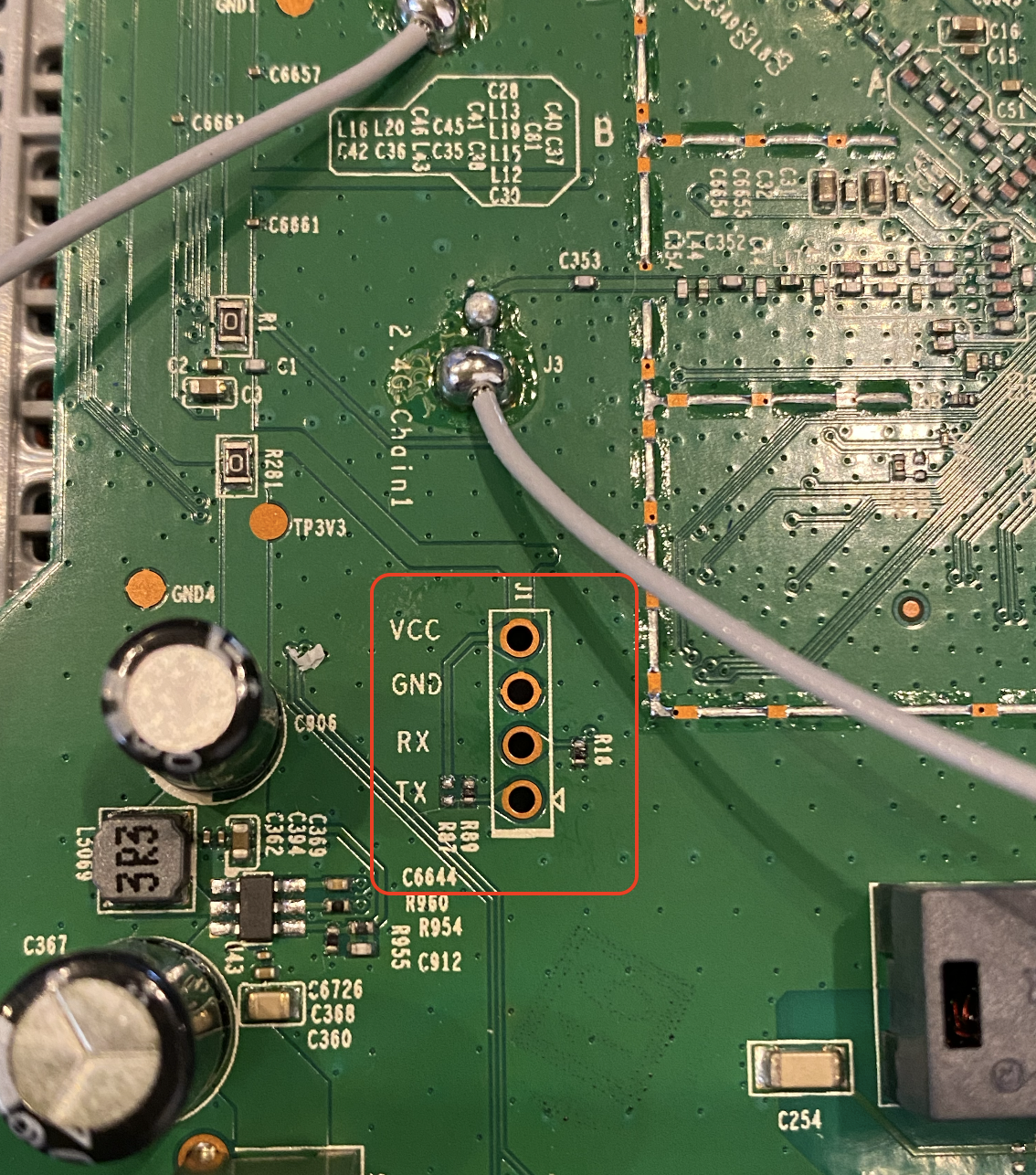 I was lucky on this one since the UART ports are labeled, so no need to test them with multimeter